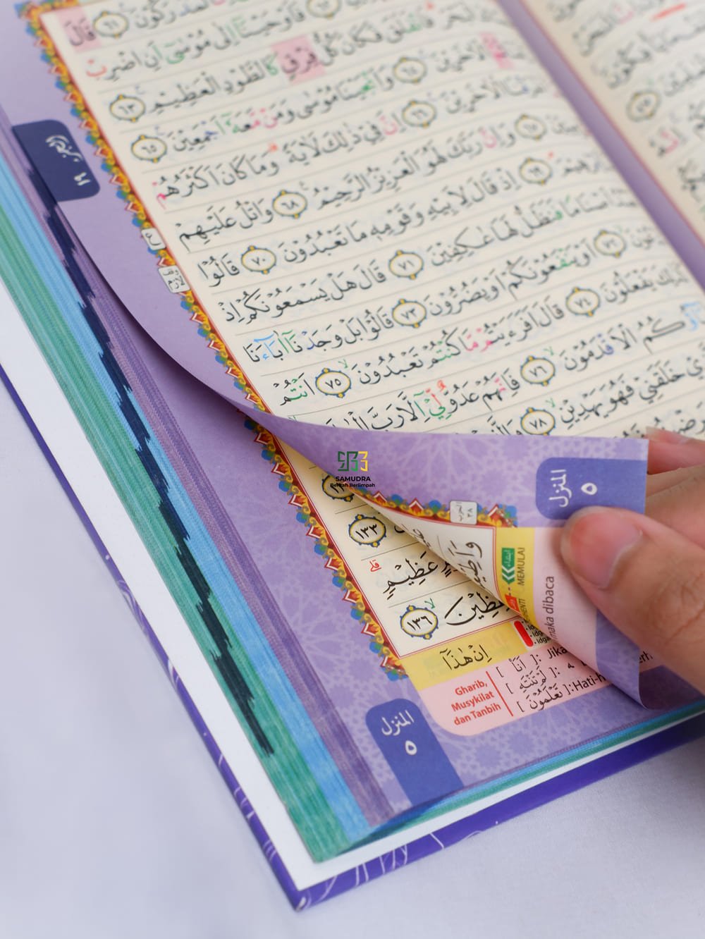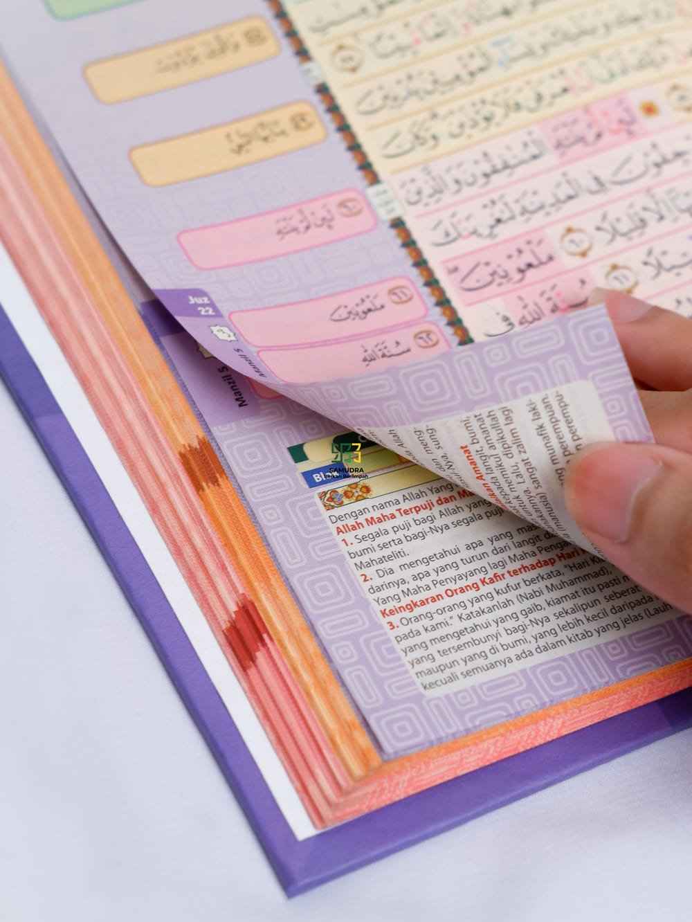 Terbagi 5 warna blok disetiap lembarnya sehingga tak hanya memudahkan namun juga menyenangkan saat hafalan