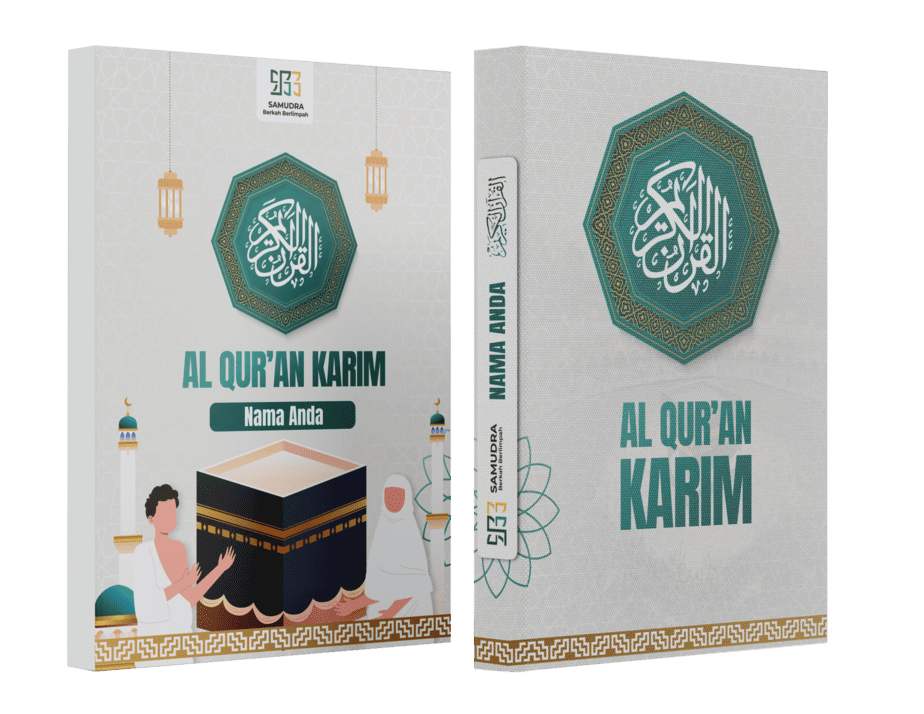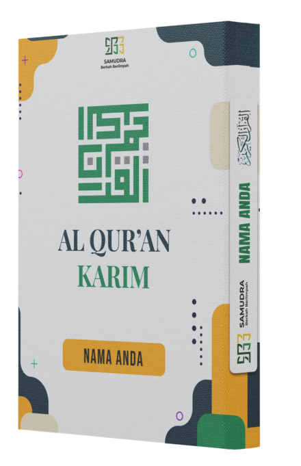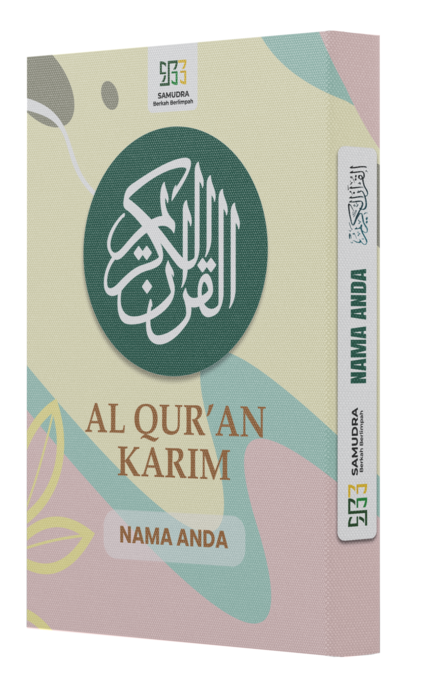 Desain cover kami sudah GRATIS oercetakan nama penerima. Sehingga membuat Al-Qur’an lebih personal dan berkesan.