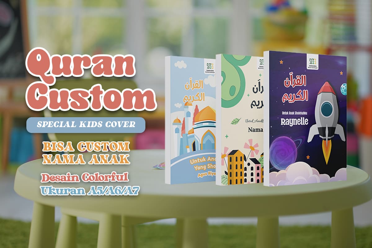 Quran Custom Nama dengan cover tema favorit anak-anak yang imajinatif, kreatif dan menarik.