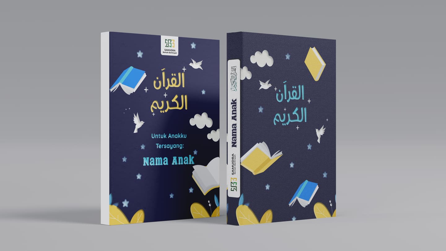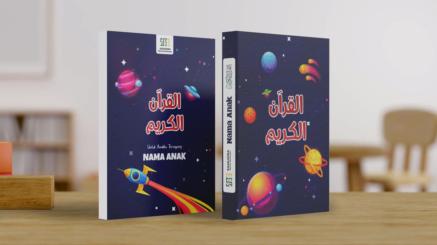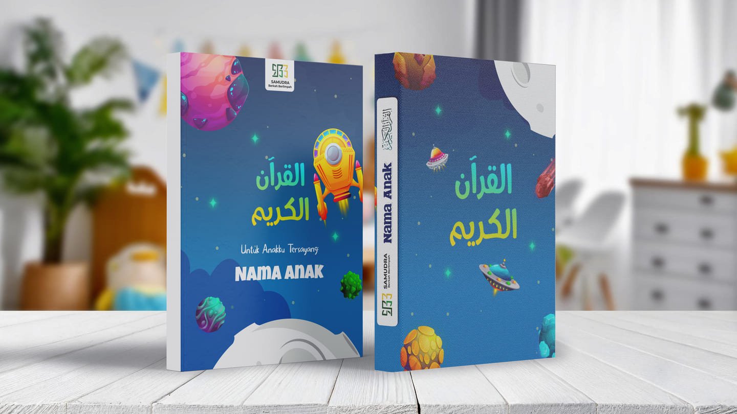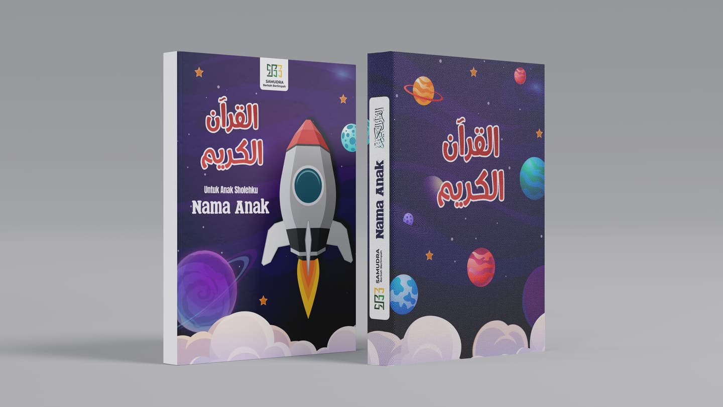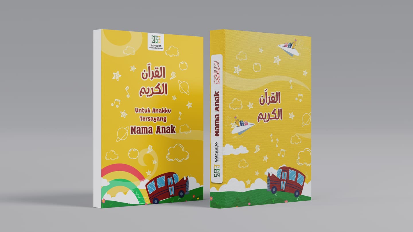 Bikin si kecil makin cinta Al-Qur’an dengan Quran Cover yang imajinatif dan menarik lengkap dengan cetakan nama si kecil